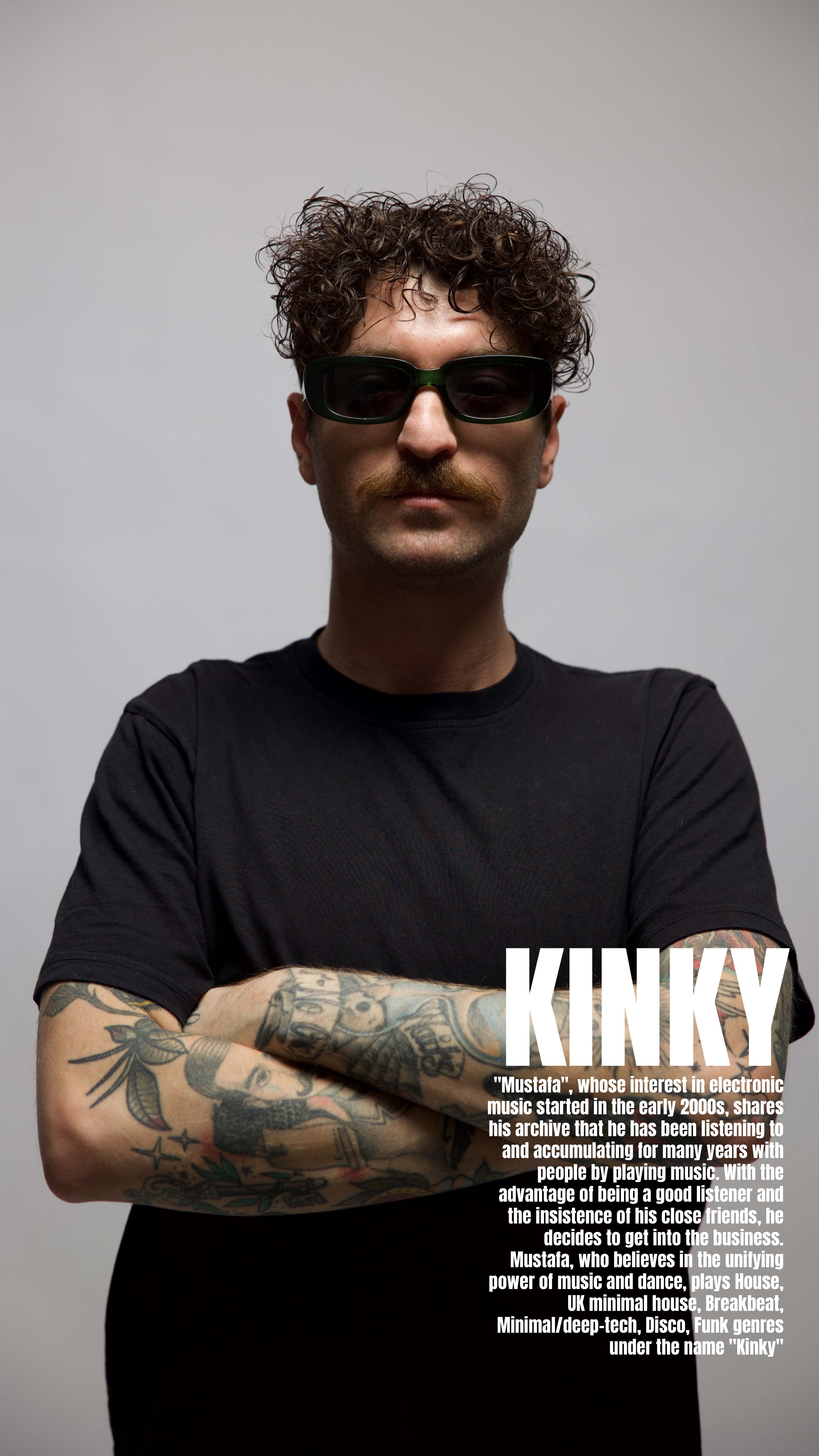 Mustafa, who believes in the unifying power of music and dance, plays House, UK minimal house, Breakbeat, Minimal/deep-tech, Disco, Funk genres under the name "Kinky"